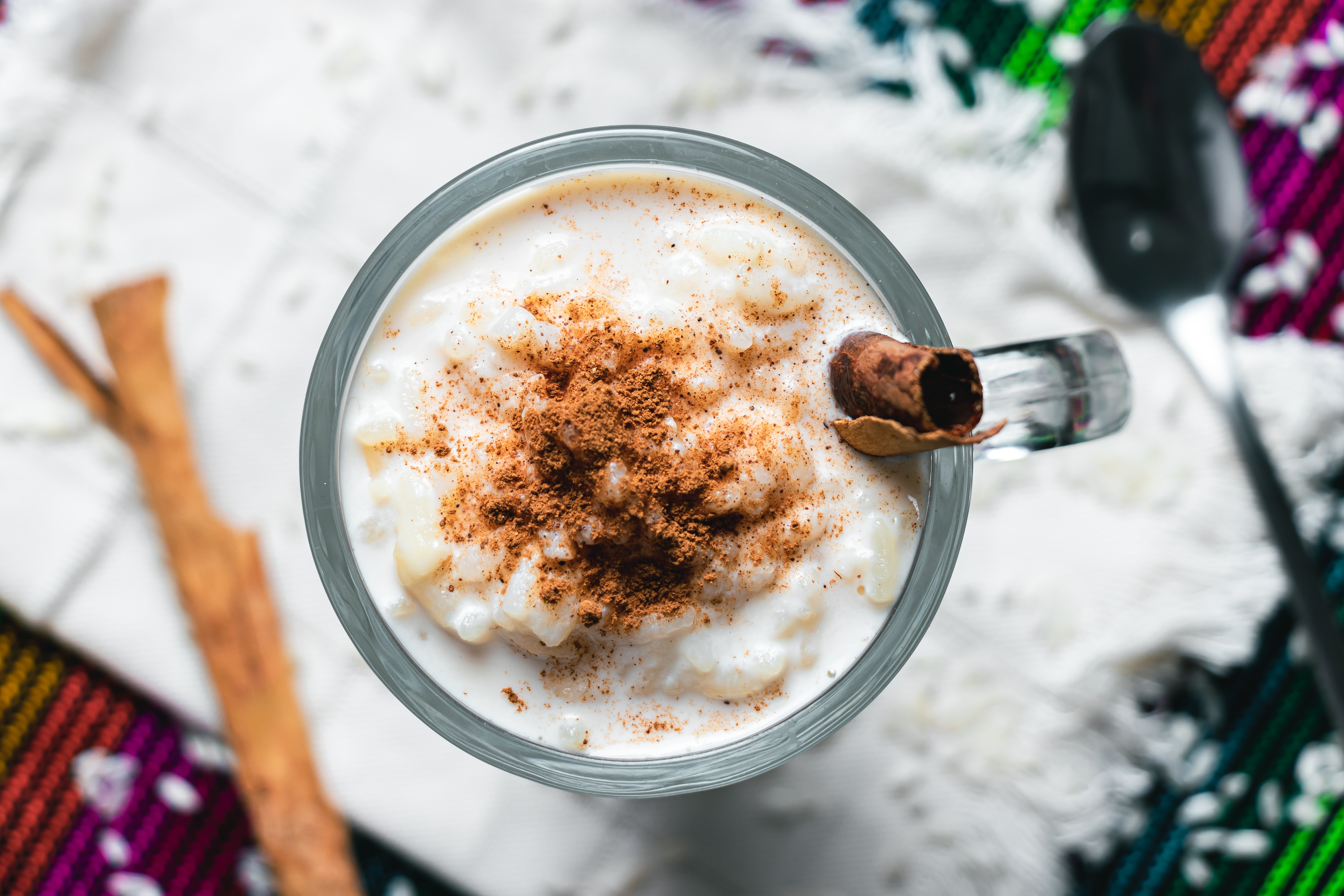 Postre cremoso con arroz, leche y canela.